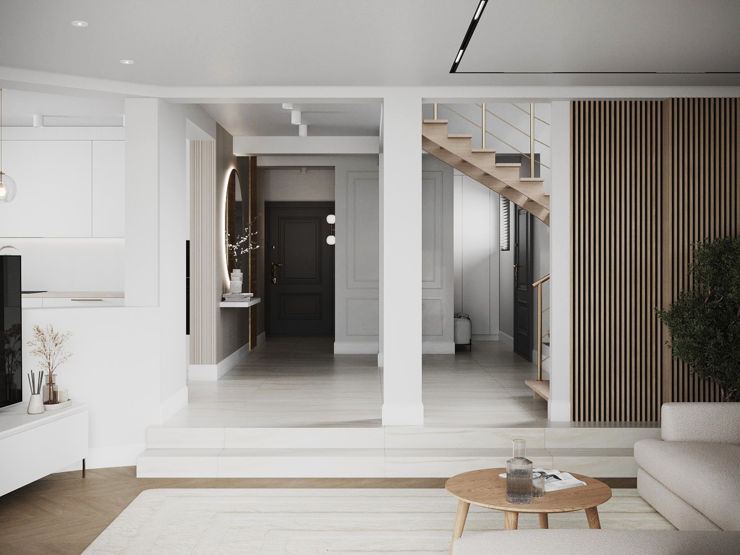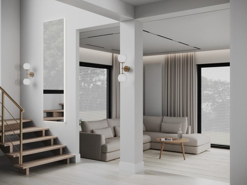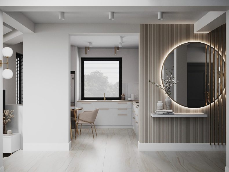 Kompleksowy remont domu w Krakowie tchnął nowe życie w jego wnętrza, łącząc szacunek do tradycji z nowoczesnymi rozwiązaniami. Jasne przestrzenie i eleganckie materiały tworzą spójną całość.