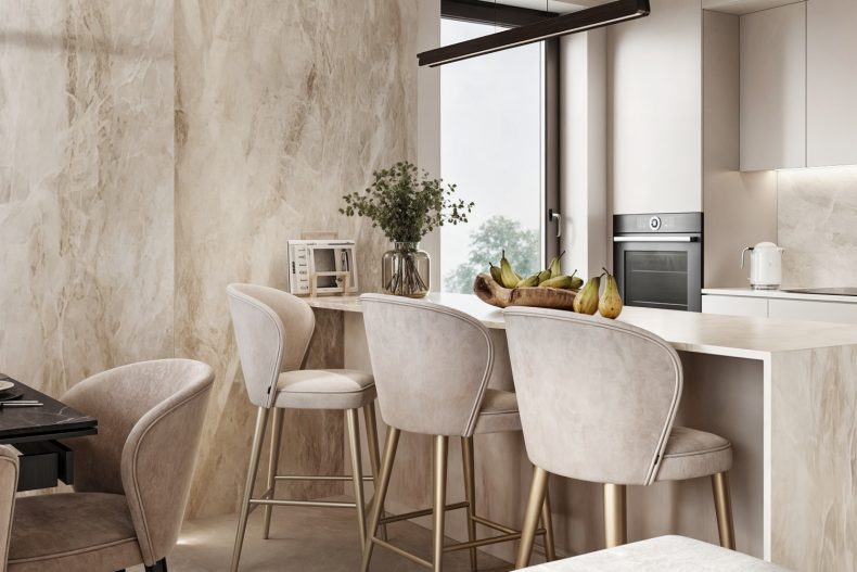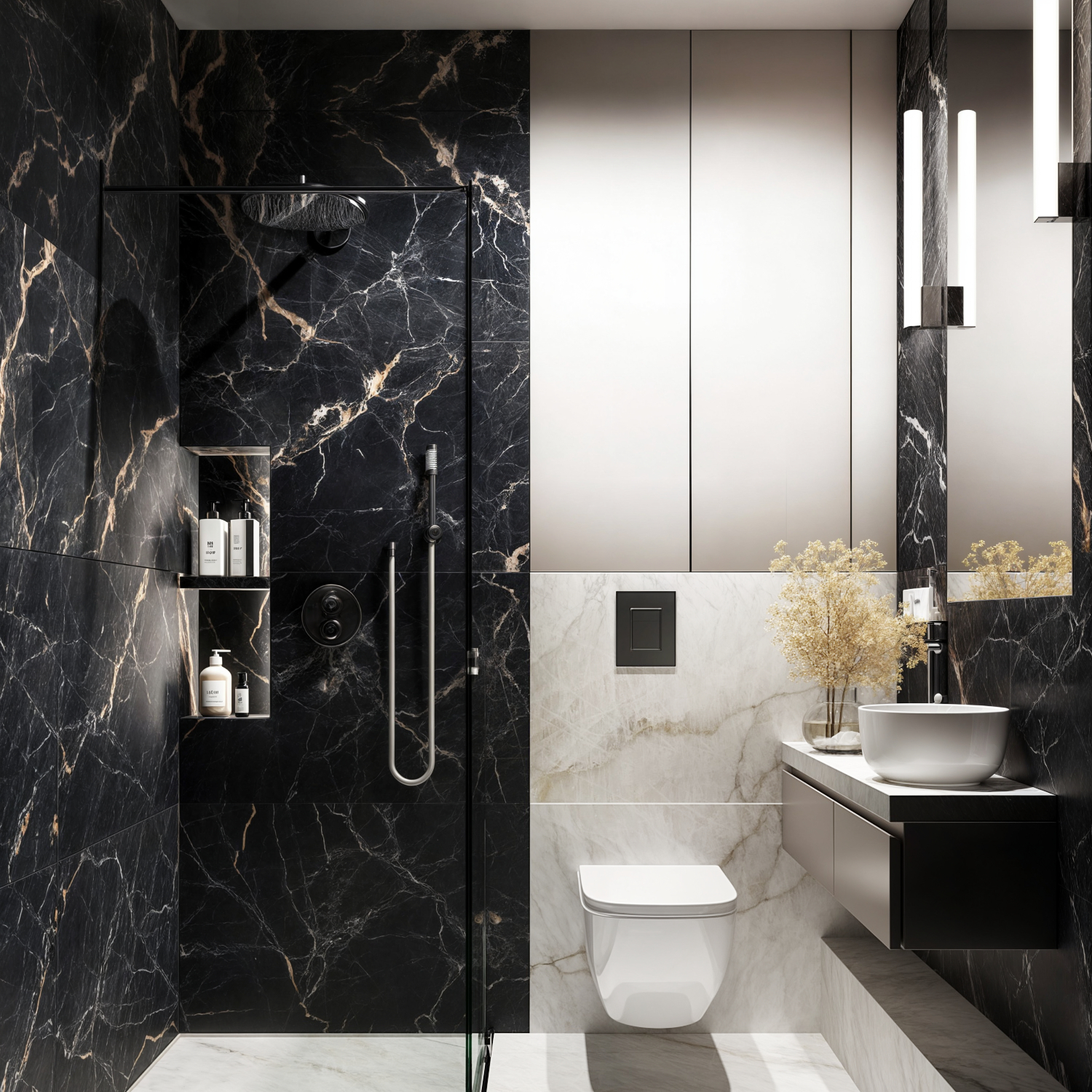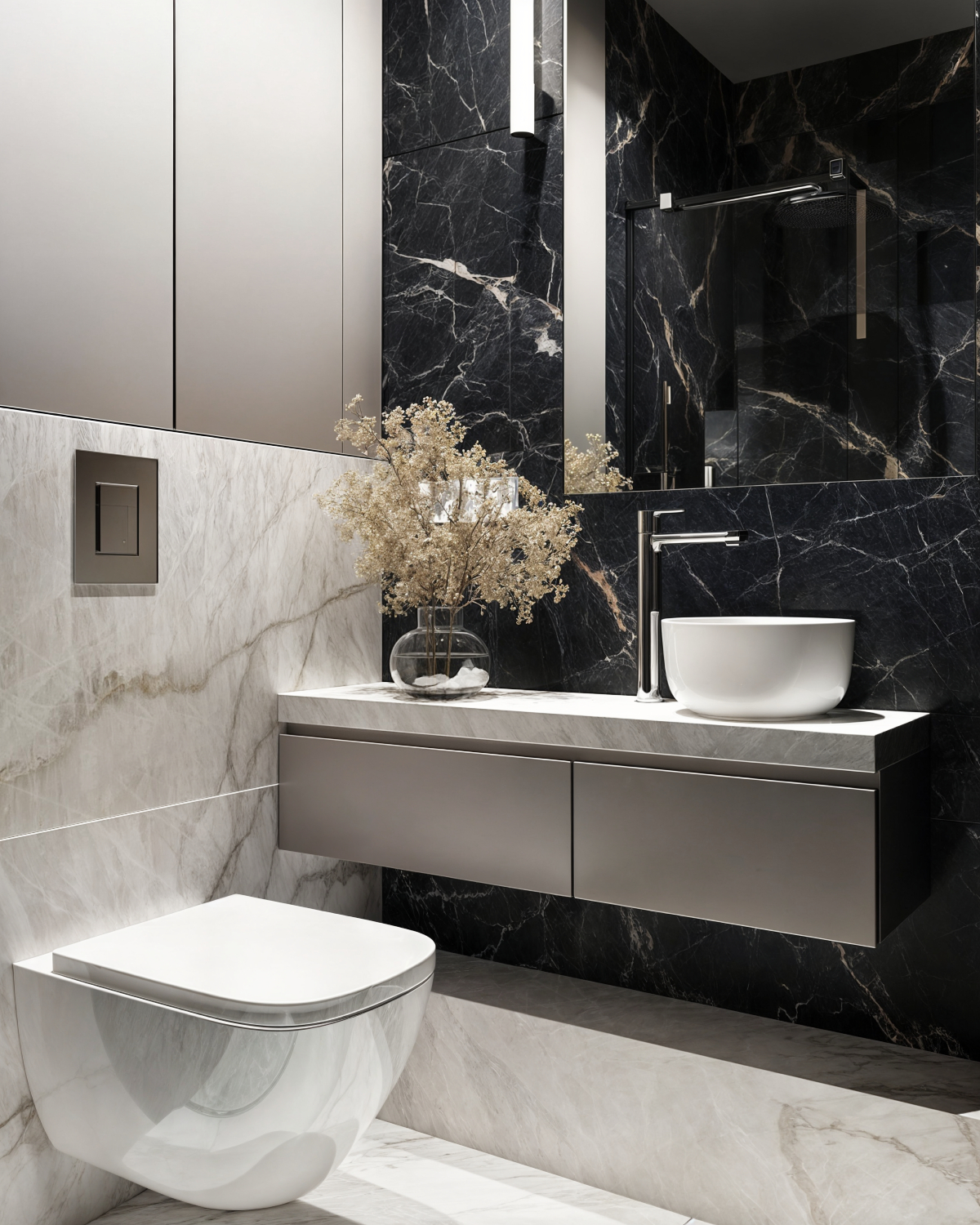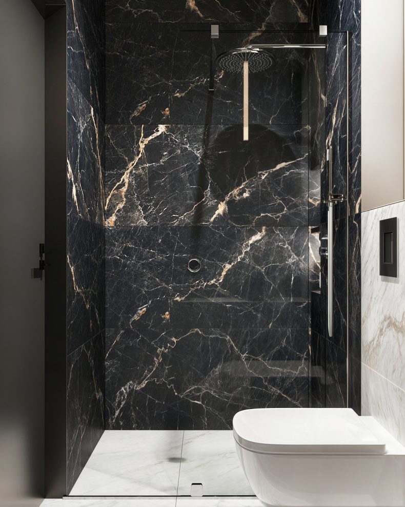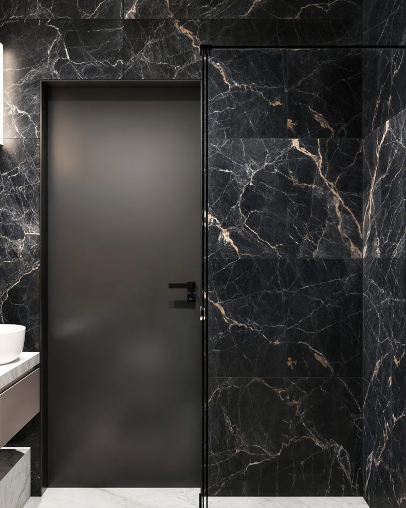 Materiały: Marmur, ceramika, szkło, metal w detalach