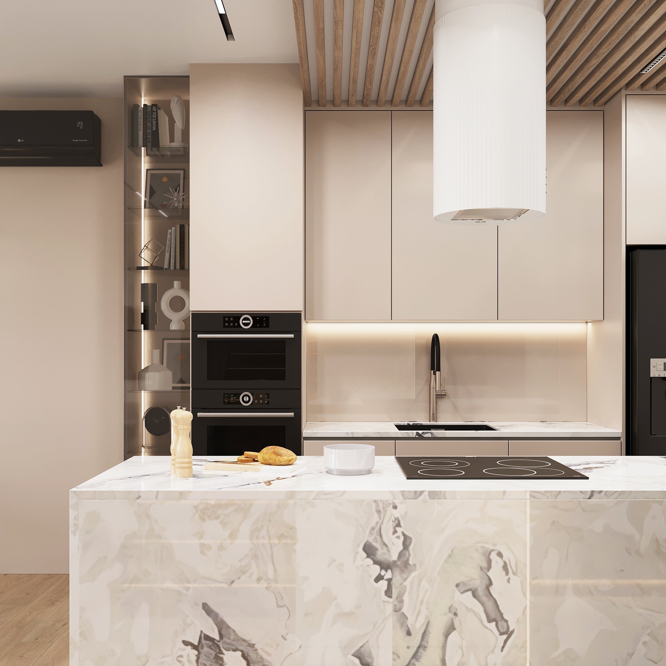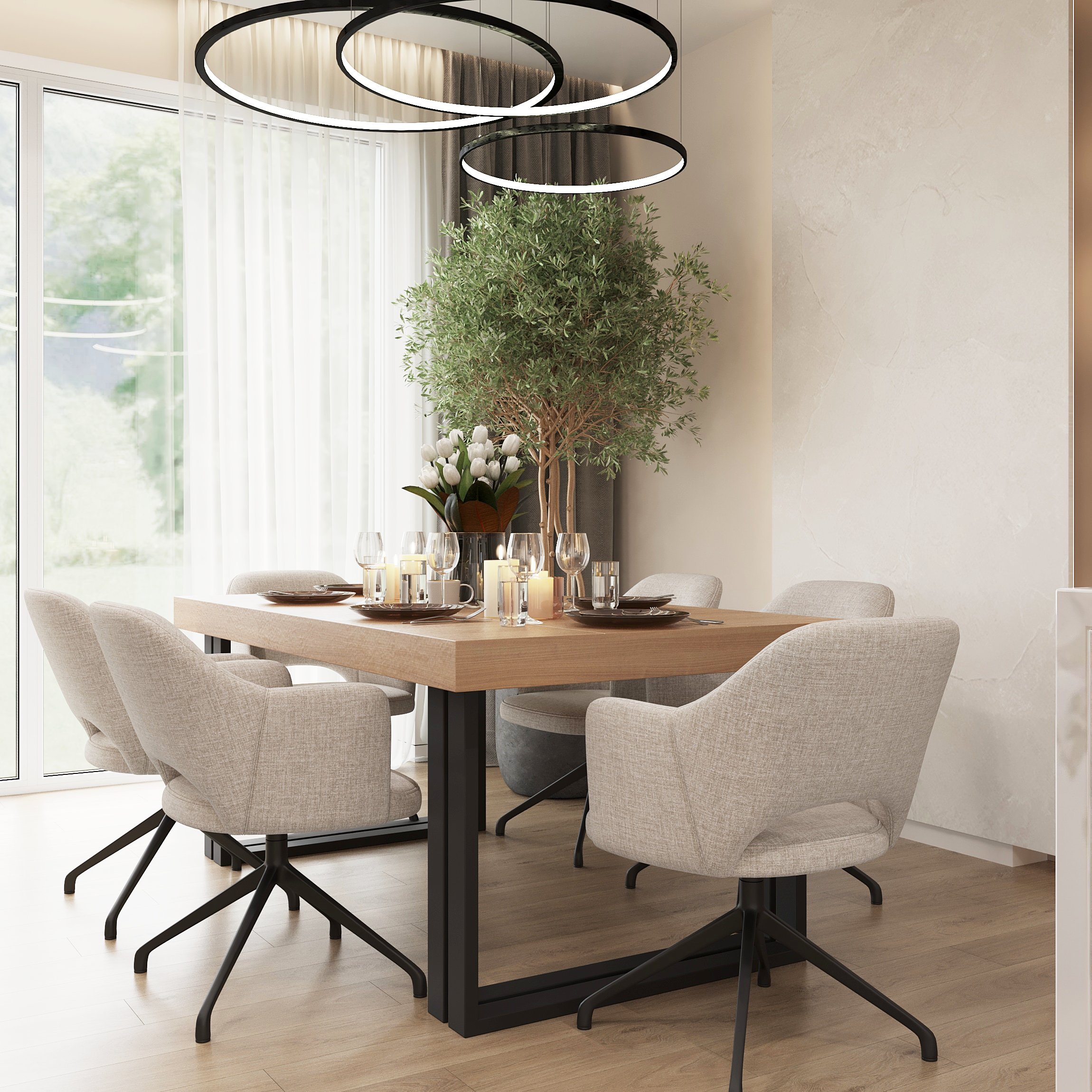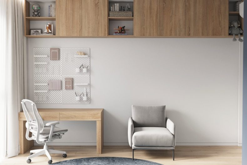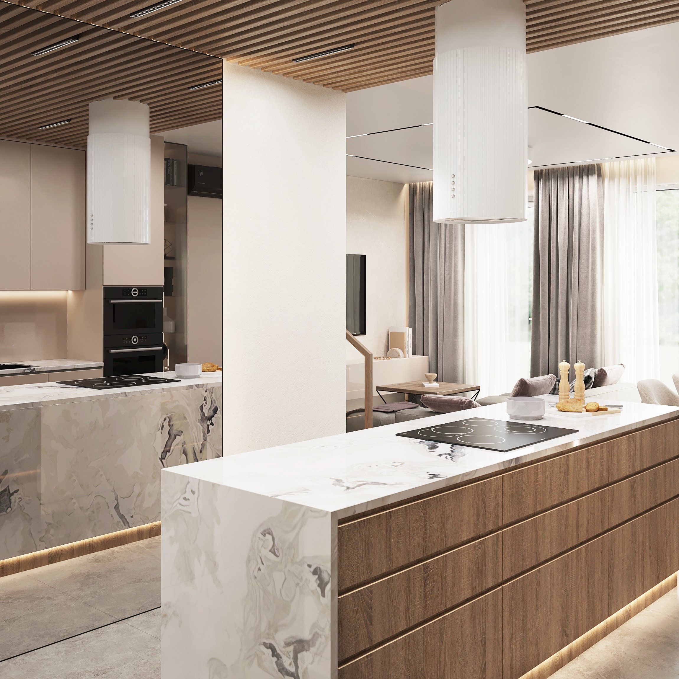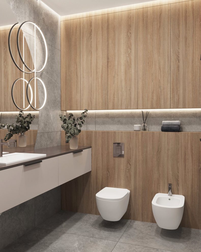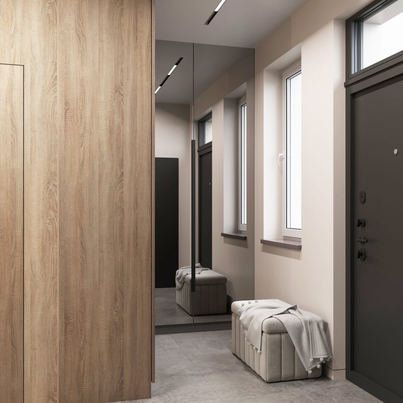 Nowoczesne wnętrze domu w Warszawie łączy elegancką prostotę z przytulnymi akcentami naturalnych materiałów. Przestronne, jasne pomieszczenia tworzą harmonijną i funkcjonalną przestrzeń do życia.
