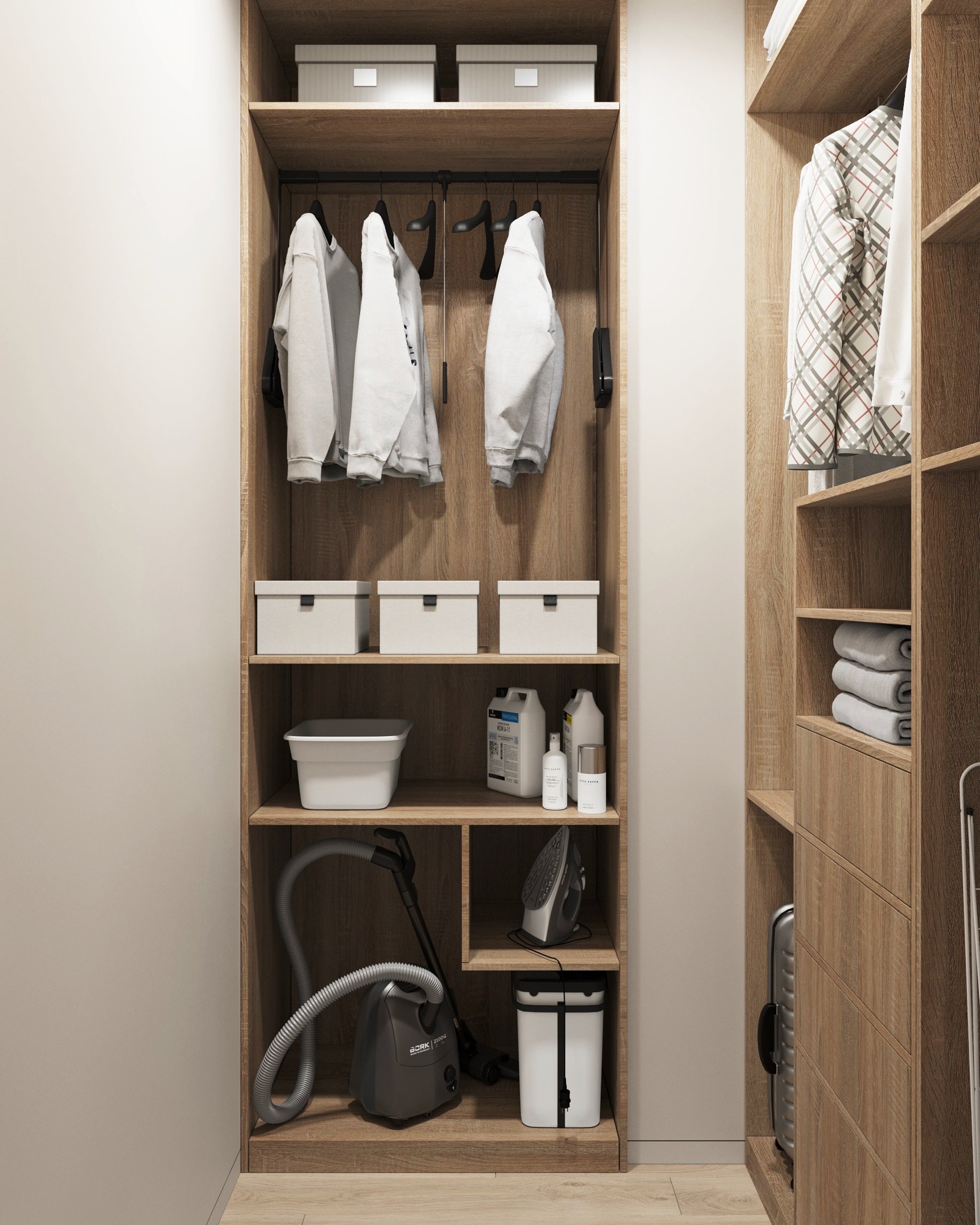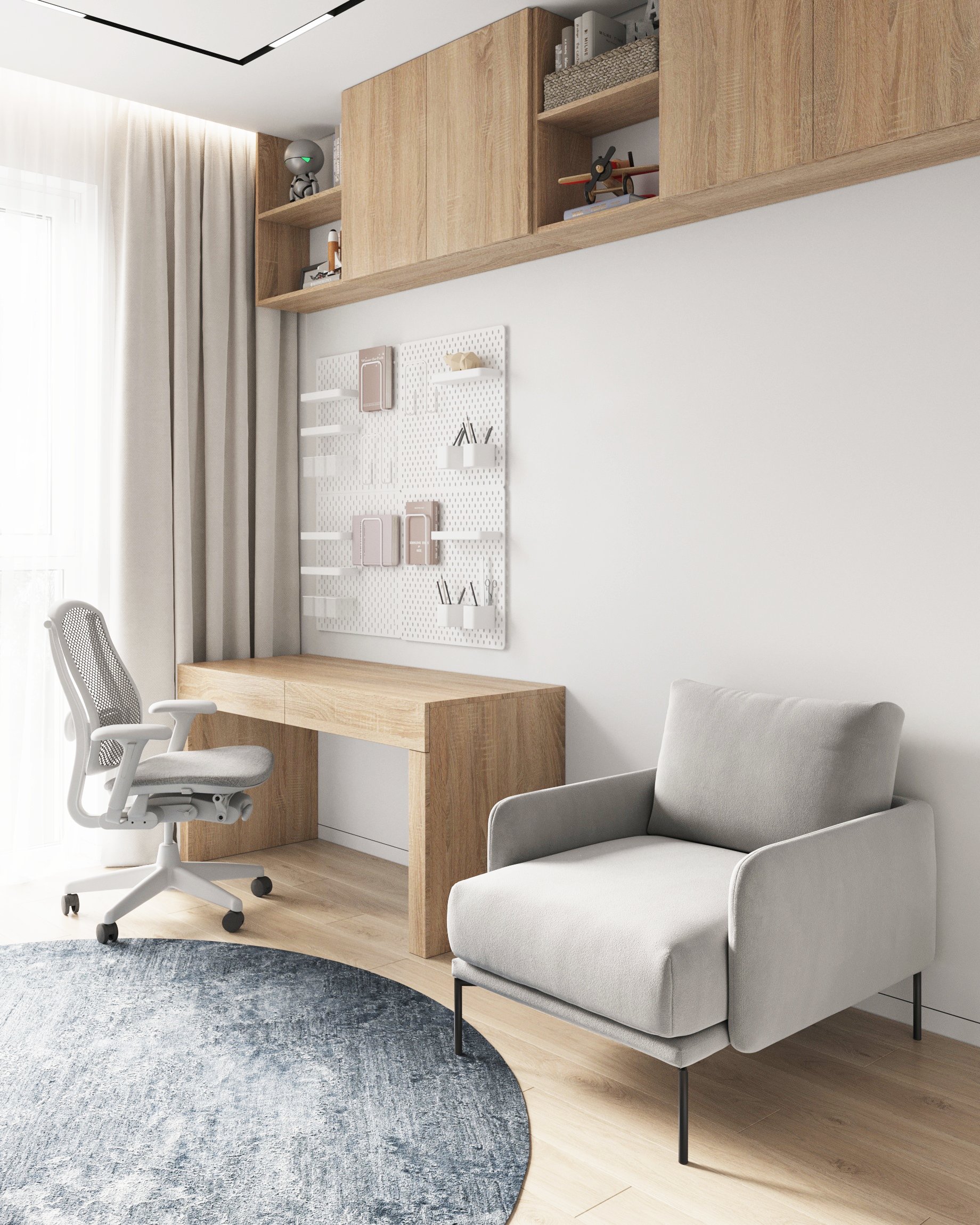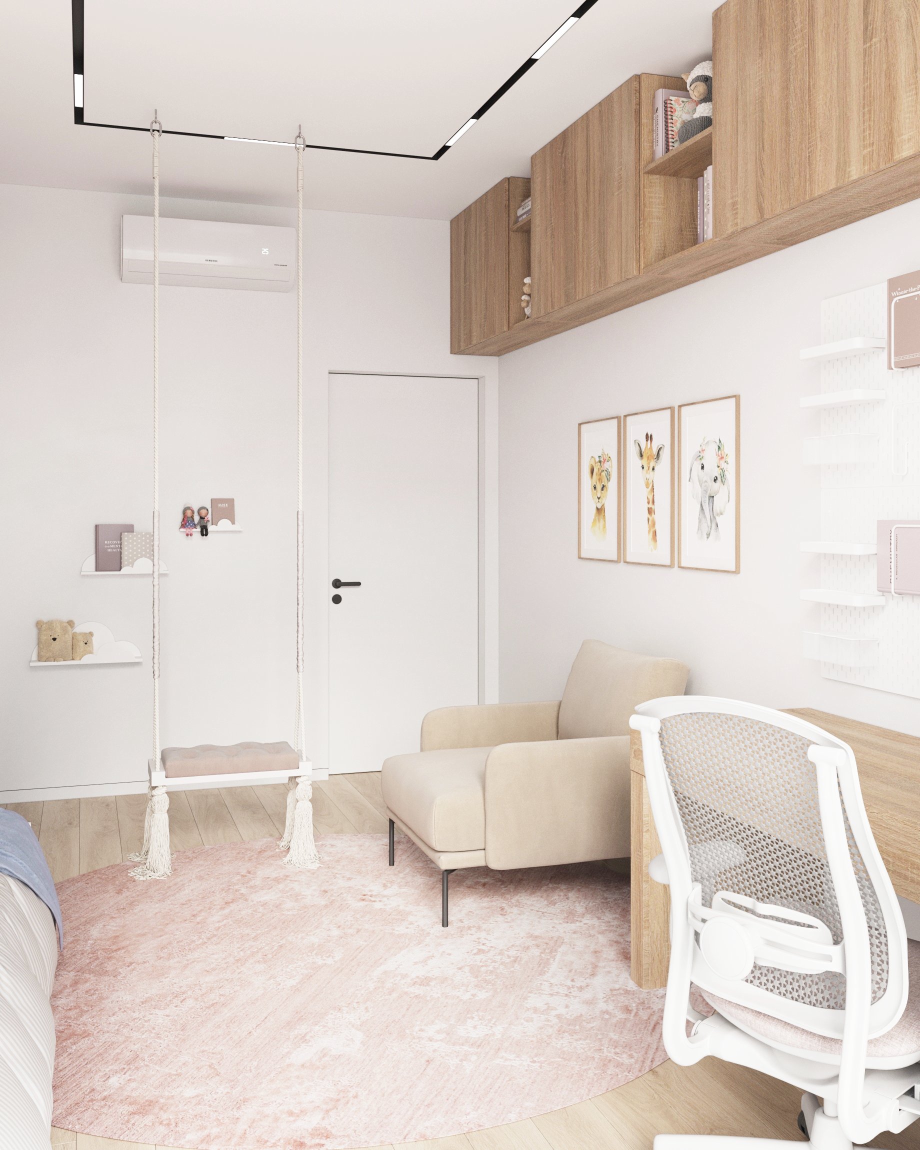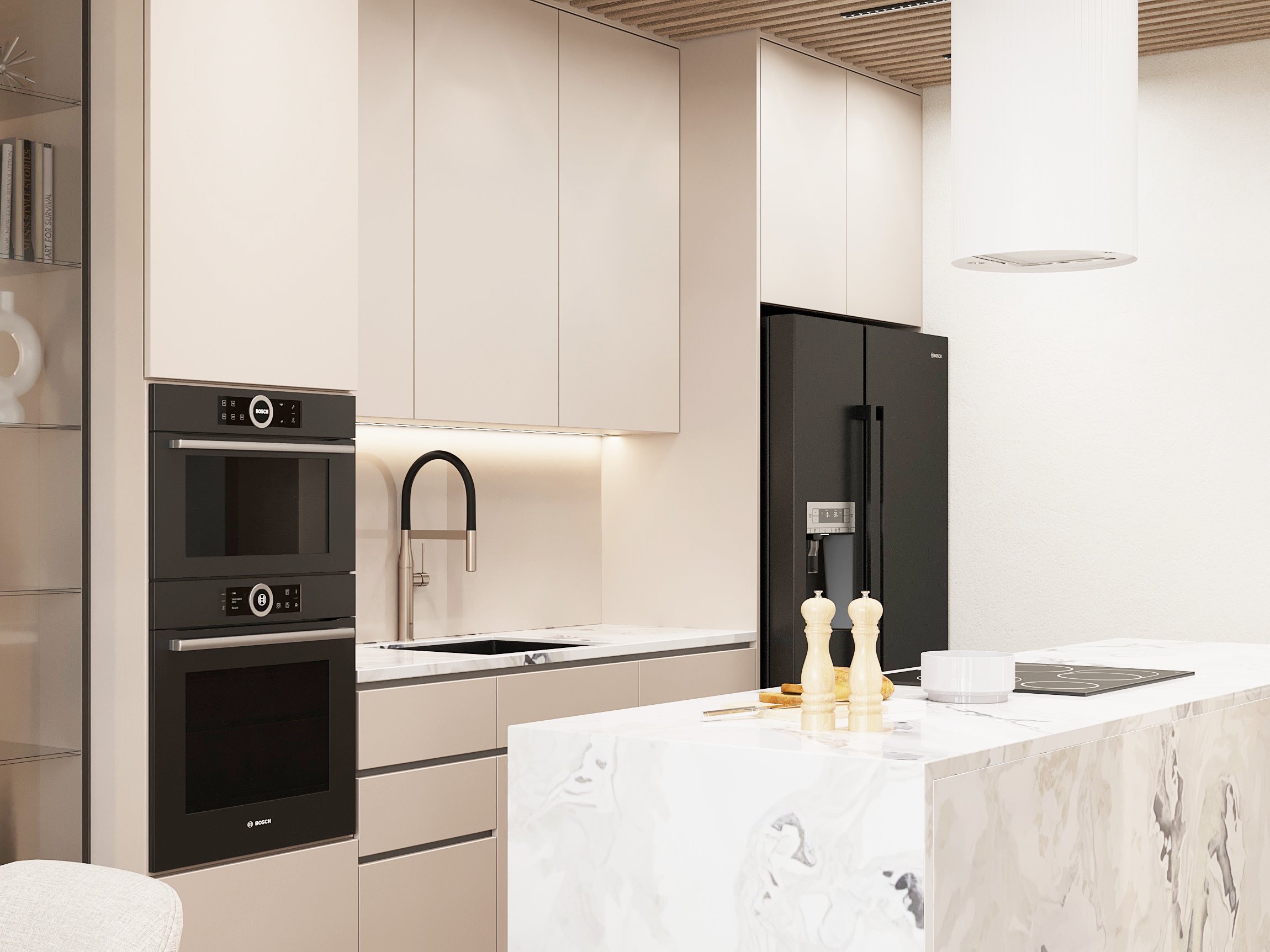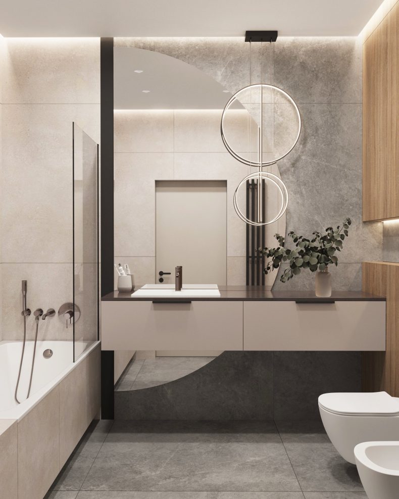 Nowoczesne wnętrze domu w Warszawie łączy elegancką prostotę z przytulnymi akcentami naturalnych materiałów. Przestronne, jasne pomieszczenia tworzą harmonijną i funkcjonalną przestrzeń do życia.